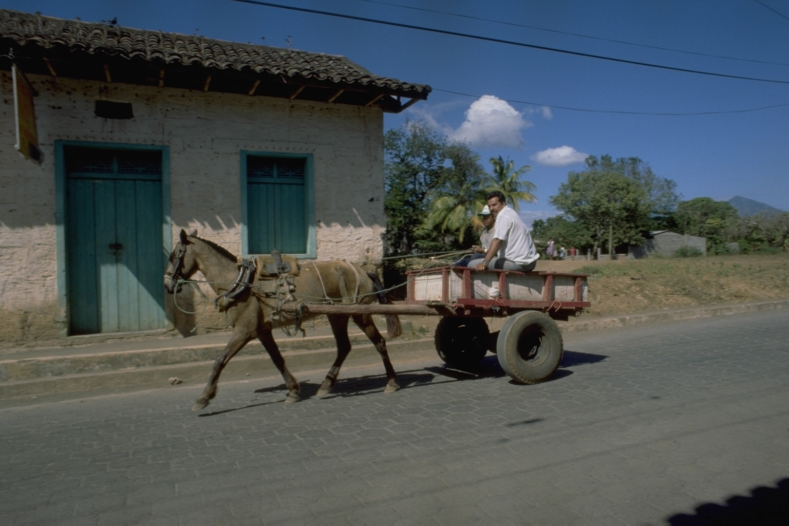 田舎の街に限らず、首都のマナグアでもこういった馬車はよく見かけました。