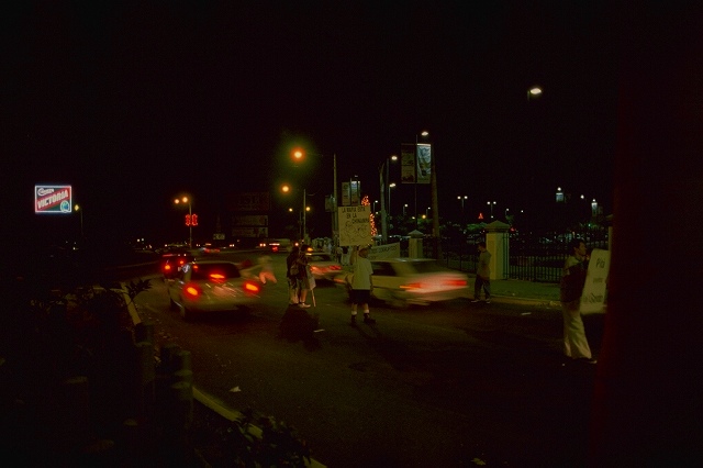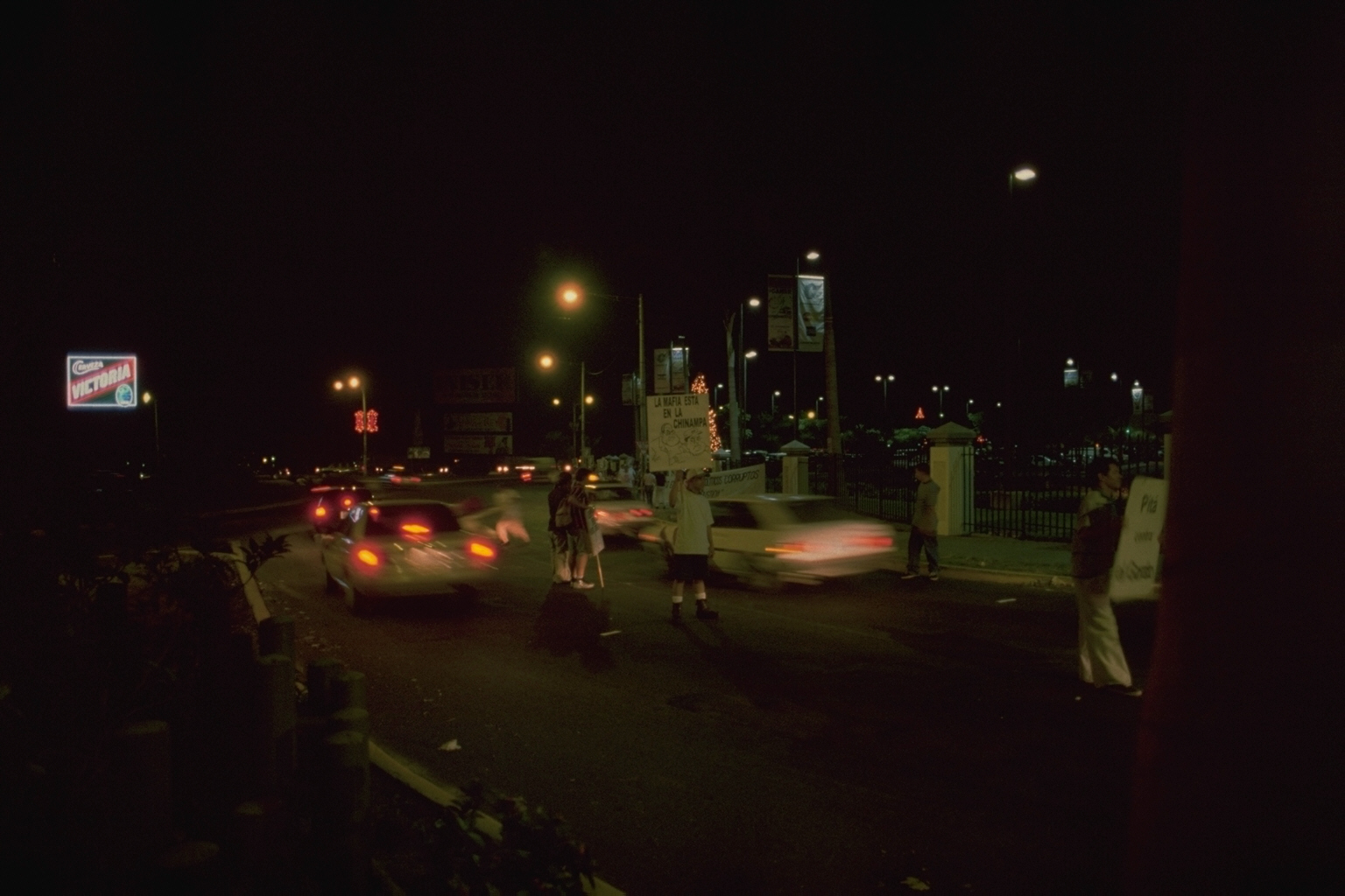 ロトンダの近辺、選挙関係のプラカードを持ってる人たち。